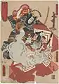 The Kabuki Jūhachiban (歌舞伎十八番), or Eighteen Best Kabuki Plays, is a set of kabuki plays, strongly associated with the Ichikawa Danjūrō line of actors ever since their premieres. These works were chosen and assembled as "the eighteen" by actor Ichikawa Danjūrō VII (1800-1832). The pieces were considered to be seminal representations of the aragoto style in the repertoire.[1] The Danjūrō line has continued to dominate the leading roles, and the printing and production of these plays ever since.