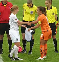 White represented the United States as various youth levels, including the under-19 and under-21 national teams. With the under-21 team, she won the 2005 Nordic Cup in Sweden.[1] On November 2, 2006, she debuted for the United States women's national soccer team during at match against the Netherlands during the Peace Queen Cup in South Korea.[2] White was an alternate for the senior national team at the 2008 Summer Olympics in China.[3]