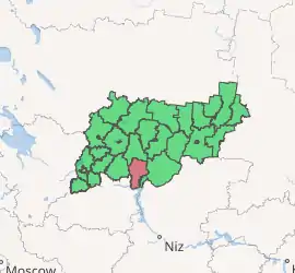 Kadyysky District (Russian: Кады́йский райо́н) is an administrative[1] and municipal[6] district (raion), one of the twenty-four in Kostroma Oblast, Russia. It is located in the south of the oblast. The area of the district is 2,190 square kilometers (850 sq mi). Its administrative center is the urban locality (a settlement) of Kadyy.[1] Population: 8,374 (2010 Census);[2] 10,341 (2002 Census);[8] 12,847 (1989 Census).[9] The population of Kadyy accounts for 43.0% of the district's total population.[2]