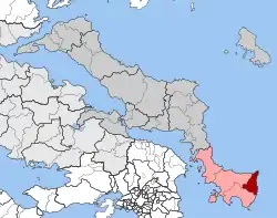 Kafireas (Greek: Καφηρέας) is a former community in Euboea, Greece, named after the nearby Cape Kafireas. Since the 2011 local government reform it is part of the municipality Karystos, of which it is a municipal unit.[2] The municipal unit has an area of 77.770 km2.[3] Population 342 (2011). The seat of the community was in Amygdalia.