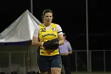 Parnaby is a pitcher,[8][11][12][13][14] and plays in relief.[15] She started out playing softball for Manly Warringah Softball Association.[8] In 2004, she was named to the New South Wales U16 team.[16] In 2006, she was named to the Australian All Schools team. In 2006, she represented Australia on the junior national U19 team.[8] She had a scholarship with and played for the Australian Institute of Sport (AIS) in 2006.[8] She was the first player from Manly Warringah Softball Association to earn a spot on the AIS roster.[8] In 2006, she played for the New South Wales side that won the Australian All Schools Softball Championship.[17]