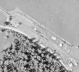 Kaikarangi railway station was a station on the North Island Main Trunk in New Zealand.[1][2] The line opened just as the government responded to the recession by ending all contracts to build the railway,[3] so, from 1888 to 1893, Kaikarangi was the northern terminus of the NIMT's southern section.[4] the station had a shelter shed, platform, cart approach and a passing loop for 22 wagons. A house was added in 1918 and by 1959 there was a loading bank and stockyards. By then it was reported that traffic in wagon lots was light and the siding mainly used to hold portions of trains in emergencies when they stalled on the Mangaonoho – Kaikarangi Bank.[5] There is now only a single line through the former station site.[6]