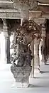 The image of Kailasanathar (Shiva) in the form of Lingam is housed in the sanctum. The shrine of his consort Sivakami (Parvati) is housed in a west-facing shrine.[3] The temple also houses the images of Vinayaka, Subramanya, Veerabhadra, Rishabhandika, and Nataraja on the walls. Two sculptures - Veerabadra and a warrior in the flagstaff hall - are noteworthy. The west-facing shrine adjacent to the flagstaff has a hall with yali pillars, where Nataraja is housed.[1] The temple has sculptural representation of sage Romasa, Agnipathar and Veerabadrar on the pillars in the temple dating back to the Nayak Empire.[4] The shrine of the guardian deity Bhoothanathar, housing his wooden image, is an important shrine in the temple. He is given the primary role during the Chittirai Brahmotsavam festival. It is believed that during historic times, the temple staff used to surrender the keys of the temple to its protector Bhoothanathar.[2] The image of the Nataraja is always covered with Sandal paste and hence called Rathnasabapathy.[4]