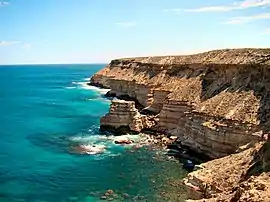 ![]() From the coastal section of the park, cliffs running south from the town of Kalbarri. | |