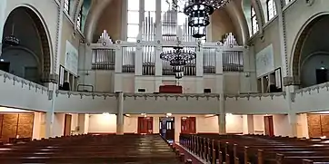 Kallio Church is the only church in Finland to have both a Baroque organ and a French organ from the Romantic period. The French organ by the Swedish organ maker Åkerman & Lund was made in 1995, and it serves as the main organ of the church. The smaller Baroque organ was built in Kangasala, Finland in 1987.