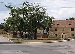 West of the village on a hill stands a 1 metre (3.3 ft) tall sandstone engraving of a Latin cross, which is considered to be a Celtic cult object known as a menhir.[3]