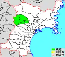colored area=original extent in Meiji period; green=present area