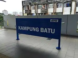 The Kampung Batu Komuter station is a Malaysian commuter train station located in the west side of and named after the village of Kampung Batu (Batu Village) in Kuala Lumpur, Malaysia. It was built on the location of the disused colonial-era Batu Village railway station. The station is served by the KTM Komuter Seremban Line.
