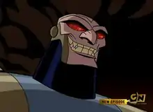 - Kanjar Ro appears in Batman: The Brave and the Bold, voiced by Marc Worden.[7] This version was an enemy with a Beetle-like alien years ago who managed to defeat the alien using a sonic-emitting Gamma Gong that the Scarab is vulnerable to. In the episode "The Rise of the Blue Beetle!", he captures the Gribble aliens because the latter's bodies can apparently be used as fuel. After defeating Batman and Blue Beetle, he managed to use the Gamma Gong to immobilize Jamie Reyes and get to wear the Blue Beetle Scarab to wear in his next fight against Batman. Just before Kanjar Ro can kill Batman, Jaime uses the Gamma Gong to remove the Blue Beetle Scarab from the space pirate. In the opening of "The Super-Batman of Planet X", Kanjar Ro appears along with his bounty of Space Pirates. They were stopped by Batman (as Matches Malone), Will Magnus and the Metal Men. Kanjar Ro appears again at the beginning of "Night of the Batmen" where he is attempting to destroy a planet for profit. He and his robot army is stopped by Batman, Green Arrow, Aquaman, Captain Marvel and Martian Manhunter but Batman is injured while attempting to disarm the bomb. He reappeared again in "Four Star Spectacular!" in the World's War vignette where he is trying to take over Rann by attempting to teleport a negaton bomb, but was foiled by Adam Strange and a puppy after he made several failed attempts to teleport the bomb to the right planet, then was teleported with the bomb he promptly shut down and is last seen eaten to death by a creature.