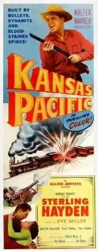 Kansas Pacific is a 1953 American Cinecolor Western film released by Allied Artists Pictures and directed by Ray Nazarro. It stars Sterling Hayden and Eve Miller. While the film was released in 1953, the title screen clearly states "Copyright MCMLII" (1952). The film offers a fictionalized account of the struggle to build the Kansas Pacific Railway in the early 1860s just prior to the American Civil War. In the film the building of the railroad in Kansas is opposed by sympathizers of the South before it forms the Confederacy.