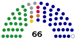 Kaohsiung City Council (Chinese: 高雄市議會; pinyin: Gāoxióng Shì Yìhuì) is the city council of Kaohsiung City, Republic of China. It is currently composed of 65 councilors, each serving a four-year term, elected using the single non-transferable vote system. Speaker and deputy speaker of the council are elected by fellow councilors through a secret ballot. Kaohsiung residents, aged 23 or above and having resided in the city for more than four months, is eligible to cast their votes or run in the municipal election.[2] Along with the New Taipei City Council, the city council is the largest Taiwanese local council in terms of seats.