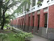 The three buildings are situated parallelly and symmetrically. The space between the two buildings are garden and pond. The buildings stretch east–west and are built up high, leading to the favorable airing and lighting condition for the classrooms. The design is effected by Victorian era red-brick buildings.