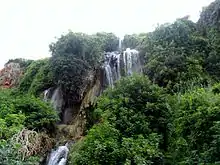 Karacaoğlan River (or Karacaoğlan Creek, Turkish: Karacaoğlan Deresi) is a small river in Erdemli ilçe (district) of Mersin Province, Turkey. Its headwaters are around Tepeköy in the Toros Mountains. It has a number of names depending on the villages around such as; Şahna, Müğlü, Dikiner, Sandal, Kargıpınarı (or Gilindire; the former name of Kargıpınarı).[1][2] In the lower reaches in Çukurova (Cilician) plains it is used for irrigation . During the post-rainy seasons its excess water falls down over the cliffs to create an artificial waterfall to the east of Elvanlı. The waterfall is a popular excursion area for Mersin citizens.[3] The river then flows between the towns of Kargıpınarı and Çeşmeli and discharges to Mediterranean Sea at 36°39′51″N 34°25′42″E.