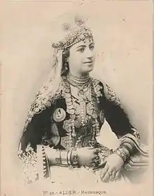 The Karakou is a long-sleeved fitted velvet jacket embroidered with golden and silvered threads, it is a traditional Algerian garment originating from Algiers.[1][2][3]