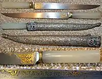 A kard (Persian: کارد, romanized: kārd, lit. 'knife') is the equivalent in the Persian language for knife.