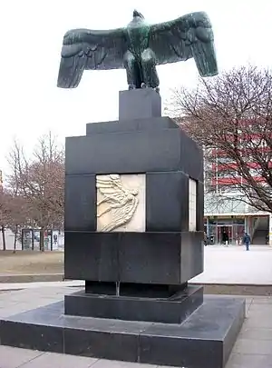 During World War I, planting was supplemented with chestnut and poplar trees while the park was also used to cultivate vegetables. Flygarmonumentet, a monument designed in 1931 by sculptor Carl Milles (1875–1955), is located at Karlaplan. Playwright and novelist August Strindberg (1849–1912) lived on Karlaplan from 1901 until 1908. It remains one of the most exclusive and expensive places to live in Stockholm city, adjacent to the Royal Park, Djurgården.[3]