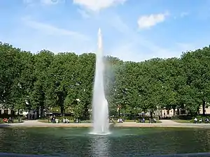 In the late 1920s, plans proposed by architect Ragnar Hjorth (1887-1971) provided for with a circular basin and a fountain. In 1930, the large fountain basin was started, which is slightly recessed in relation to the surrounding street level.[2]