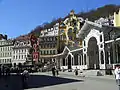 Market Place with Market Colonnade and Holy Trinity Column in Karlovy Vary