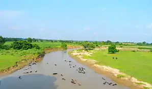 River Kathna rises in Moti Jheel (Lake) near the village of Dhanega (Kuthar) in Shahjahanpur district. After first 16 kilometers, it enter Kheri district near the town of Mailani. Then it flows to the south and enters Sitapur district at Kalwartal near the town of Maholi. It then flows south in tortuous course, cutting off pargana Chandra from rest of the district and joins Gomati just north of the village of Dadhnamau.[2]