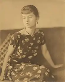 In reviewing the solo show given her a year later a Brooklyn Daily Eagle critic noticed a continuing improvement in her work. This critic saw little influence of Miller's naïve style, a continuing feeling for texture and color, and, in general, and increasing competency in her work.[36][note 16] Writing about the same show Margaret Bruening of the New York Evening Post mentioned lingering traces of "Kenneth Hayes Millerism," praised Schmidt's self-portrait as "a likeness and a good piece of plastic design carried out in reticence and surety," and said that she "seems to grow quite steadily and triumphantly into her own." One painting, called "Still Life" was to Breuning the highlight of the exhibition. "A real joy to behold," it was, she said, a work of "power and beauty" having "aesthetic emotion" that was lacking in Schmidt's landscapes and figure paintings.[37] The tendency to see increasing strength and maturity in Schmidt's work continued in reviews of her solo show at the Daniel Gallery in 1930 of which one critic pointed to a "a rich and natural realization of her gifts" and said "she is now reaping the artistic reward for this strenuous apprenticeship, in a power and concentration that the more easily satisfied painter does not attain."[38][39]