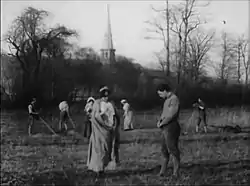 16. A field with a group of peasants working. Terence and Katheleen come in running and are welcome by the peasants. They stop for a prayer when they hear the bell ringing the angelus.