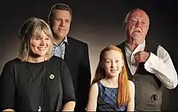![]() Crew of Katie Morag receiving Peabody Award in 2016. Left to right: executive producer Lindy Cameron, writer Sergio Casci, actor Cherry Campbell, director Don Coutts | |