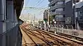 The tracks at the north end of the Daishi Line platforms in January 2016