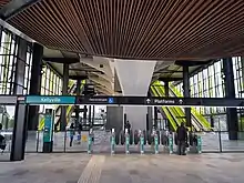 Kellyville railway station is an elevated station on the Metro North West Line, as part of the Sydney Metro network. The station was built by Impregilo-Salini and Metro Trains Sydney for Transport for NSW, and is situated along Samantha Riley Drive, Kellyville, in Sydney, Australia. Train services from the station run to Rouse Hill and Chatswood, with a journey time to Chatswood of around 33 minutes. As the New South Wales Government's Sydney's Rail Future strategy is delivered over the next 20 years, services are expected to be extended to the Sydney central business district (CBD) and Bankstown. Kellyville Station opened on 26 May 2019.[2][3]