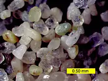 The dunes are composed predominantly of light-colored quartz and feldspar, most likely eroded from the granitics of the San Bernardino Mountains to the southwest. Magnetite and amphibole can also be found, often accumulating at the dune crests.