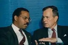 When Blackwell began to consider statewide and national offices, he became a Republican. He was appointed to serve in the administration of President George H. W. Bush, as undersecretary in the Department of Housing and Urban Development from 1989 to 1990. He returned to Cincinnati to run for the first district seat in the United States House of Representatives which was being vacated by Tom Luken. Blackwell lost to Luken's son, Charlie Luken, by a narrow 51% to 49% margin. Following his close defeat, Blackwell was appointed by President Bush as US ambassador to the United Nations Commission on Human Rights. Blackwell served in that post from 1992 to 1993.