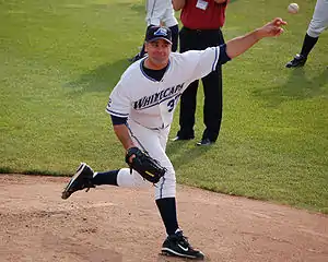 Kenneth Scott Rogers (born November 10, 1964) is an American former Major League Baseball (MLB) pitcher, with a 20-year career (1989 to 2008) for six different teams. He won the 1996 World Series with the New York Yankees over his hometown Atlanta Braves, and played in the 2006 World Series with the Detroit Tigers. In addition to being known for his fielding (winning five Gold Glove Awards), he pitched the 14th perfect game in MLB history. In 2008, he was the oldest baseball player in the American League.