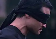 Tancharoen released a first look at the character in January 2013 by posting on Instagram an editing-room shot of Kenshi's "blinding" scene. Legacy fight choreographer Larnell Stovall called the Ermac/Kenshi fight a personal "geek-out moment," because "who would have thought we would see those two fight in a web series?"[17] In a June 2013 interview with Nerd Reactor, Southworth, who said that Kenshi was his favorite MK character, explained that Kenshi's lack of backstory allowed him to "fill in the blanks with history," giving the character "a clan or a region that he probably came from ... and why he was rogue at the time," but neither were ever explored in the show. Southworth also said that the blindfold he wore was real and that there were "moments where I was just swinging my arms out and was hoping that it connected in the right place, or not."[18] Like Ermac, Kenshi was given a completely black palette in the show that eliminated all traces of red from the game version of the character, with his armor replaced by a more modernized design slightly resembling tactical gear. The Sento sword itself deviated from a traditional katana in the games to the hilt being adorned with small gray skull carvings and having no hand guard.