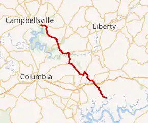| Adair | | 18.575 | 29.894 | South end of KY 206 overlap | |