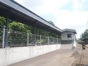 This station was inaugurated on 9 February 2004, along with the launch of the Delta Express by President Megawati Soekarnoputri.[2] However, on 10 February 2021, the passenger service at this station was discontinued so that now not a single commuter train service stops at this station.[3]