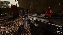 Gameplay consists of players fighting through waves of zombie-like specimens, known as 'Zeds'. As waves pass, the enemy count will increase; different enemy types are introduced as players complete each wave, culminating to a boss fight as the final wave. Enemy count is determined by the number of players in the game. The boss character is determined randomly upon the start of the last wave, and each boss is defeated differently.[4] Players equip themselves with melee weapons and firearms, a healing syringe, and a welder used to block passages. Random weapons, ammo, and armor can be found by exploring the level, though players have a limited amount of weight they can carry.[5]