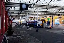 ![]() Main entrance to Kilmarnock railway station, showing the upgraded station clock to the right | |