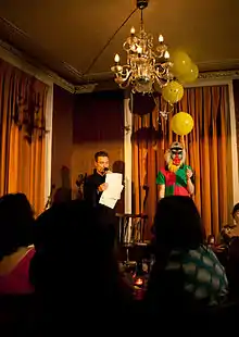 Kim Kim Gallery is a contemporary art gallery run by Gregory Maass & Nayoungim, a German-Korean artist duo. The Gallery was founded at the Market Gallery[1] in Glasgow, Scotland, in 2008.[2] It describes itself as "a non-profit organization, locative art,[3] an art dealership based on unconventional marketing, a curatorial approach, an exhibition design firm,[4] and editor of rare artist books,[5] depending on the situation it adapts to; in short, it does not fit the format imposed by the term Gallery".Clemens Krümmel[6] writes, "This begins with the excess of dis-identificatory self-reference in creative dialogue with the institution Kim Kim Gallery, along with corporate identity and advertising products and a mania borrowed from Martin Kippenberger for 'great' work or exhibition titles".[7]