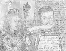Nakhee and Nakyoung Sung are sisters.[30] The many painted faces, grimacing, sign-like, broadly applied seem to open a mimetic space-within-the-space. Some of Nakhee and Nakyoung Sung's gestures seem to me just as raw as if they had broken down the walls. "Their artistic intelligence and skill is not limited to languages of painting, it resides in the sometimes disharmonic, sometimes utterly willful, capricious application of their personal, intra-familial, professional ambivalences. And since it lets outside images and sounds seep through the walls, it is on the way to break open any cube or preconception of painting." [31]