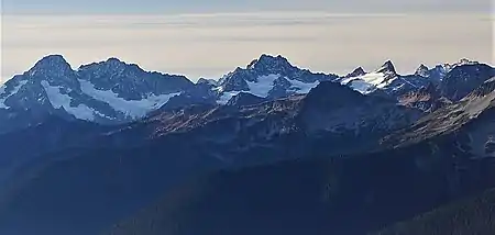Kimtah Peak, elevation 8,600+ feet (2,620+ m), is in North Cascades National Park in the U.S. state of Washington.[3] Kimtah Peak is a summit along a ridge known as Ragged Ridge. Kimtah Glacier is on the northwest slopes of the peak, while Katsuk Glacier is to the northeast.[3]