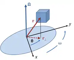 Consider a particle P that moves only on the surface of a circular cylinder r(t) = constant, it is possible to align the Z axis of the fixed frame F with the axis of the cylinder. Then, the angle θ around this axis in the X–Y plane can be used to define the trajectory as,