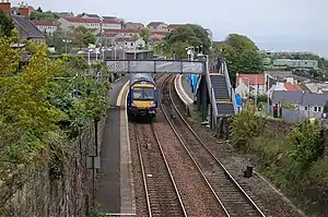 Kinghorn railway station is a railway station in the town of Kinghorn, Fife, Scotland. The station is managed by ScotRail and is on the Fife Circle Line, 22+3⁄4 miles (36.6 km) north east of Edinburgh Waverley.