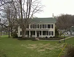 The Kintner-McGrain House, also known as Cedar Glade, is on the National Register of Historic Places, located north of downtown Corydon, Indiana. It attained the "Cedar Glade" name due to the giant red cedars Jacob Kinter, the builder, planted in front of the house. It has been owned by three different families: Kintners (1808), McGrains(1849), and Bennetts (1998). It is the second-oldest building in Harrison County, Indiana. It was built in 1808, and is a Late Federal/Early Republic Style, "L"-shaped, brick dwelling. During John Hunt Morgan's raid in 1863, noncombatants took refuge in the house. Ironically, several cannonballs landed in the front yard. Until 1946 it was a working farm.[2]