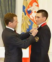 ![]() Kirill Mikhaylov is awarded the Order for Services to the Fatherland, fourth degree, in Russia, by President Dmitry Medvedev, for winning three gold and two silver in biathlon and cross-country skiing at the 2010 Winter Paralympics. | |||||||||||||||||||||||||||||||||||