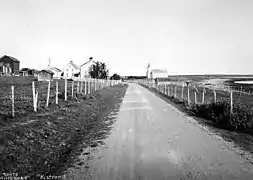 The first church in Kistrand was built in 1719. The church was a small long church made out of wood. In 1763, two side arms were added to give it a cruciform design. In 1803, the old church was torn down and a new church was built on the same site.[3]