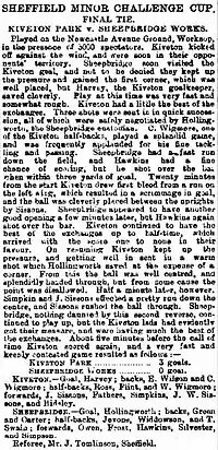 ![]() A match report from Kiveton's 1892 Sheffield Minor Cup win