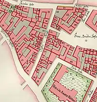 Most of the buildings in the street date from the 18th century. No. 8,[2] No. 16,[3] No. 21, No. 22, No. 23 and No. 24 are listed.