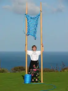 The current holder of the Guinness World Record for Knitting with the Largest Knitting Needles is Julia Hopson[22] of Penzance in Cornwall.