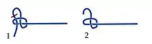 Considering how knots may be produced with a string, the folding of knotted proteins should involve first the formation of a loop, and then the threading of one terminus through the loop. This is the only topological way that the trefoil knot can be formed. For more complex knots, it is theoretically possible to have the loop to twist multiple times around itself, meaning that one end of the chain gets wrapped around at least once, and then threading to occur. It has also been observed in a theoretical study that a 6-1 knot can form by the C-terminus threading through a loop, and another loop flipping over the first loop, as well as the C-terminus threading through both the loops which have previously flipped over each other.[3]