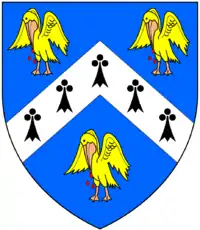 Arms of Culme: Azure, a chevron ermine between 3 pelicans vulning their breasts or