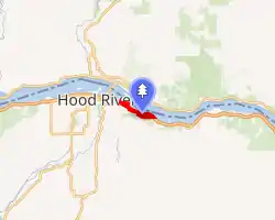 Koberg Beach State Recreation Site is a state park in Hood River County, Oregon United States, administered by the Oregon Parks and Recreation Department. The park offers a wayside rest area for west bound traffic on Interstate 84.